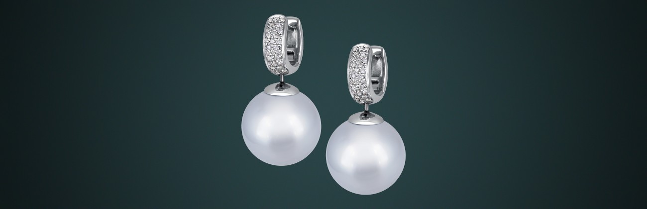 Серьги из коллекции MAYSAKU: жемчуг Южных морей, золото 585˚,56 бриллиантов (Кр-57, 0,35 ct, 3/5А), государственное пробирное клеймо. Вес изделия 17,69