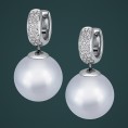 Серьги из желтое золота с белым жемчугом Южных морей и вставками бриллиантов с-210647жб